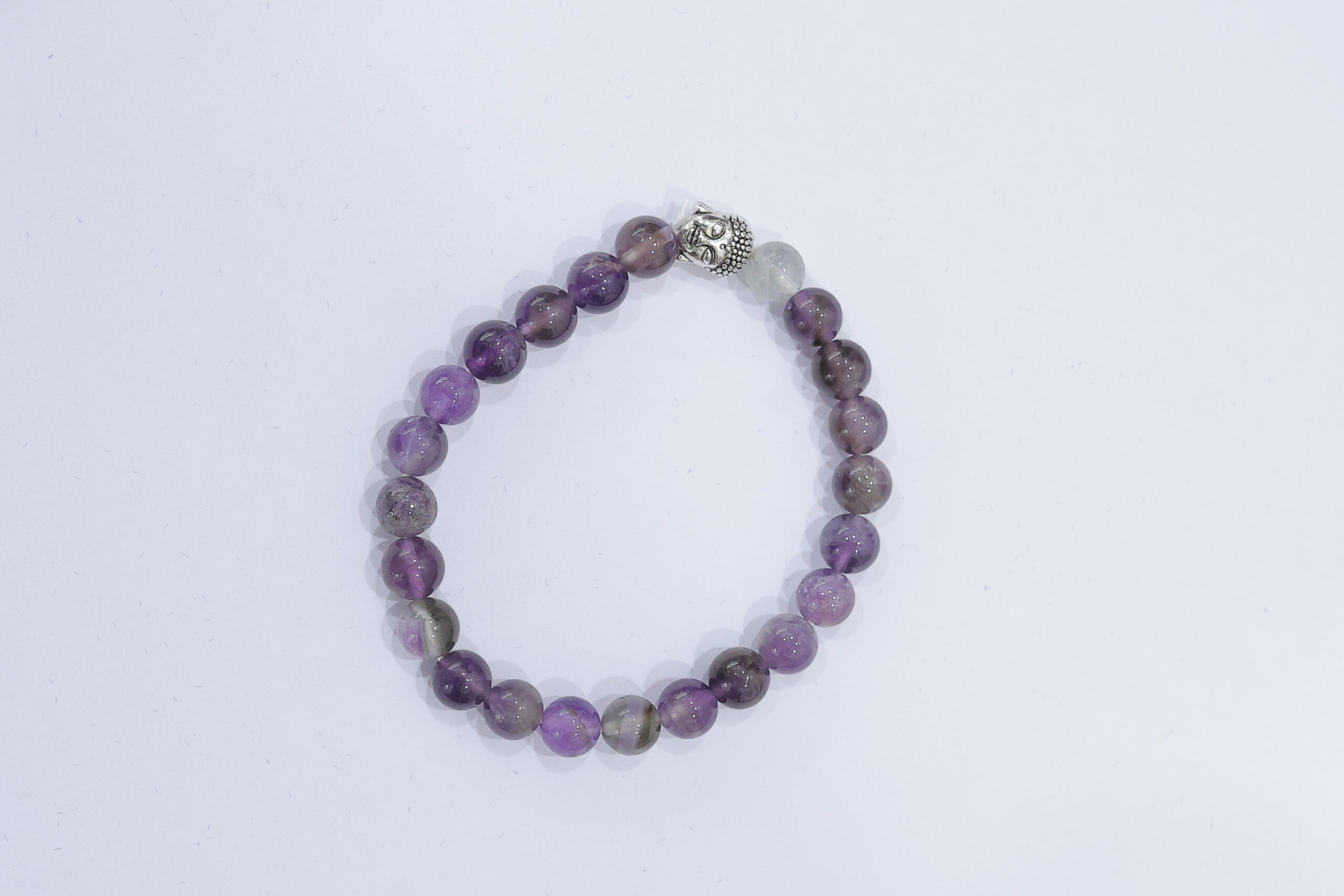 Serene and elegant, this Amethyst Bracelet features beautifully polished amethyst beads arranged in a single strand, accented with a subtle Buddha charm. Its rich purple hues and simple design make it a perfect accessory for adding a touch of tranquility to everyday outfits.