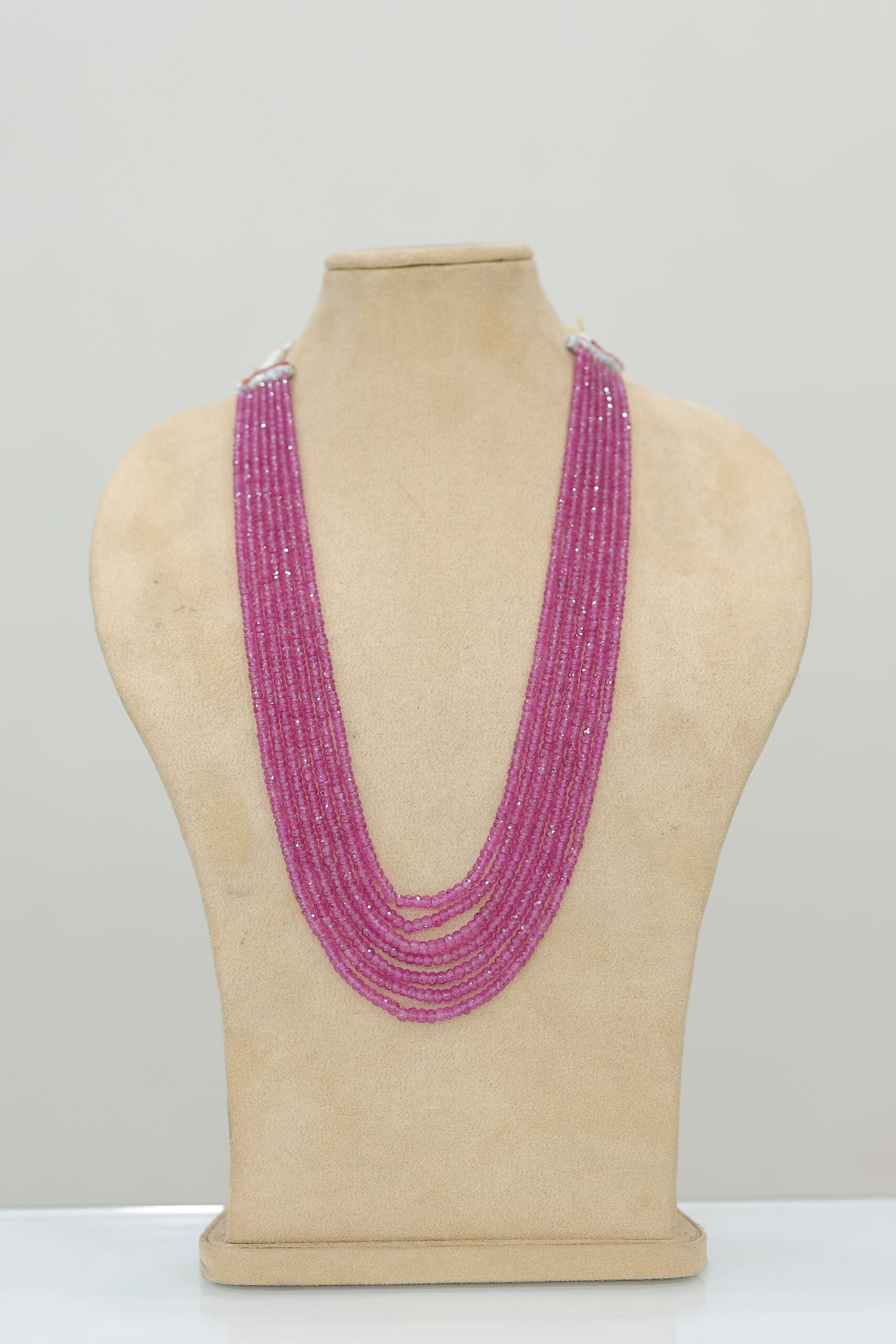 This magnificent Natural Ruby Chip Bead Multi-Strand Necklace features multiple strands of genuine ruby chip beads displaying the rich pink to deep red color that makes this precious gemstone one of the most coveted stones in the world. Each strand showcases natural ruby fragments in their organic chip form, creating a luxurious cascading effect that highlights the stone’s exceptional brilliance and inner fire. This statement necklace represents the ultimate in precious gemstone jewelry, featuring the king of colored stones in a design that maximizes both visual impact and the passionate energy ruby is celebrated for throughout history.